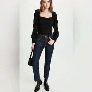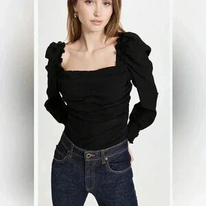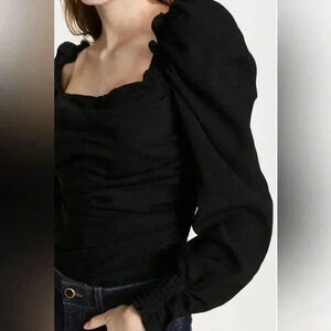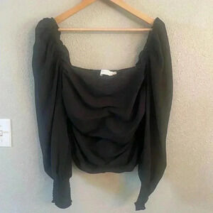 ASTR the Label Square neck puff sleeve blouse, Black Large
