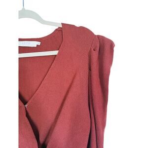 ASTR the Label Suki Puff Sleeve Surplice V-neck Wrap Sweater Large Rust Brown