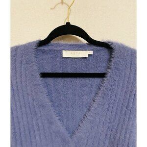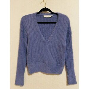 ASTR the Label Sweater Womens Medium Purple Veda Fuzzy Ribbed Faux Wrap Boho