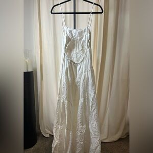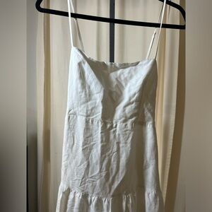 Temecula Tiered Midi Dress from ASTR the Label. white, tiered midi dress with a square neckline, adjustable straps, a back cutout detail