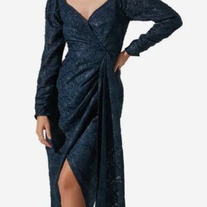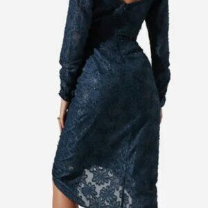 ASTR the Label Terese Metallic Floral Long Sleeve Cocktail Dress Navy Blue