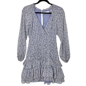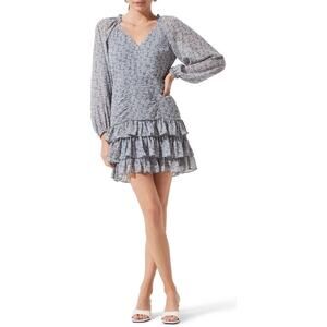 ASTR the Label Tiered Ruffle Dress in Blue Multi Floral, XS