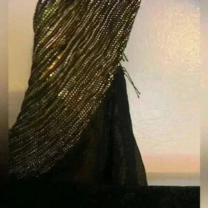 Buttons at the neck with fabric to tie in a bow or leave hanging