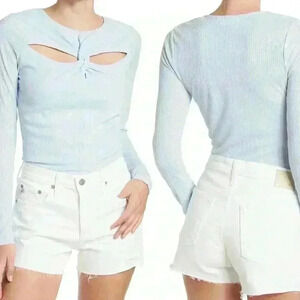 ASTR the Label Twist Cutout Bodysuit in Blue Size Medium NWT