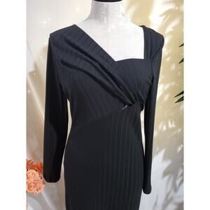 ASTR the Label Twist Front Ribbed Asymmetrical Ruched Long Sleeve Bodycon Midi Womens Dress Size L Black