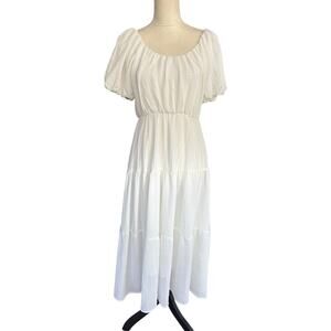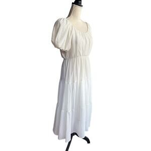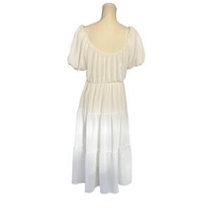 ASTR the Label White Gauze Puff Sleeved Tiered Lined Midi Dress - XS