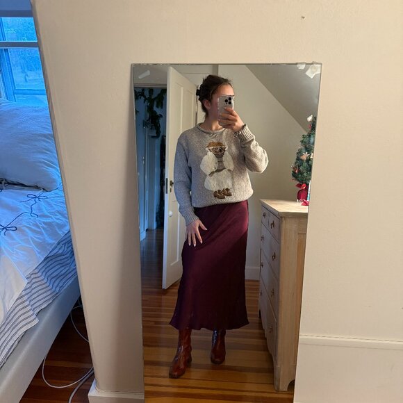 This rich burgundy midi skirt is the perfect piece to dress up or down! Perfect for work, holiday parties or a fun day out!! Perfect length