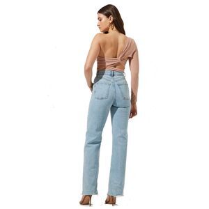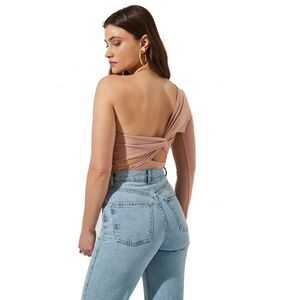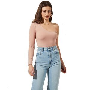 ASTR the Label Women Beige Twist Back One Shoulder Thong Bodysuit Size M
