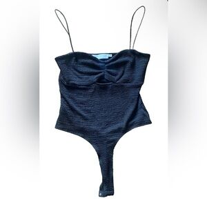 ASTR the Label Womens Black Textured Crinkled Bodysuit Size Large