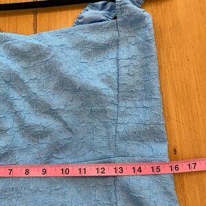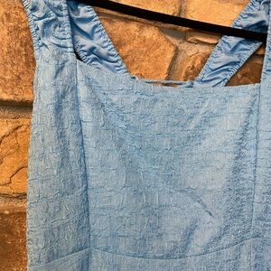 Elegant blue new sleeveless maxi dress. Covered chest with with a more open back with a crisscross tie. It is 100% polyester and comfortable. I have the measurements in the pictures but let me know if you have any questions. It is a new XL.🌷