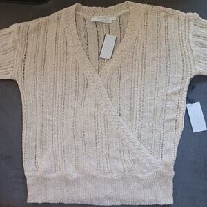 ASTR the Label Wrap Front Pointelle Knit Sweater Cream L NWT