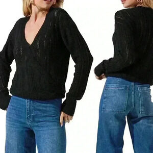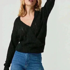 ASTR the Label Wrap Front Pointelle Sweater in Black Size Large NWT