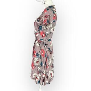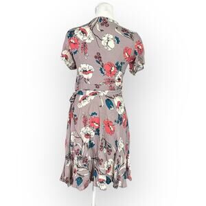 ASTR the Label Wrap Mini Dress Women's Small Gray Floral V-Neck Short Sleeves