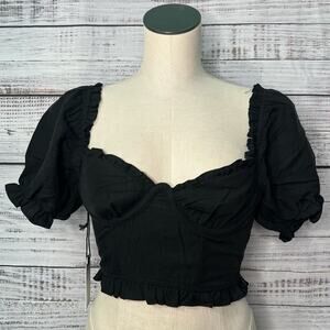 ASTR the Label XS Feronia Top in Black Smocked Back Boned Coquette Puff Shoulder