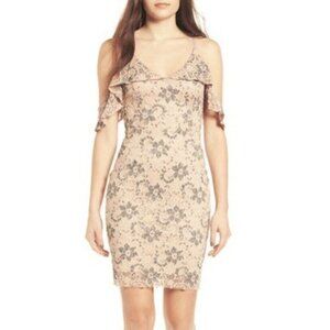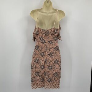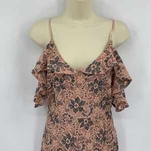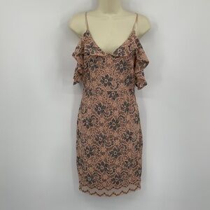 ASTR the Label floral lace slip shift dress pink gray cold shoulder ruffle Small