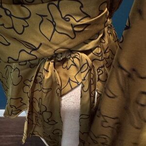ASTR the label Asymmetrical Collared Floral Wrap Top Olive Floral Sketch Large