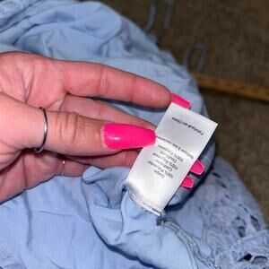 ASTR the label LACE A LINE MIDI DRESS pale blue midi crochet overlay SZ M