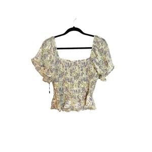 ASTR the label Lilac Floral Smocked January Tops Flutter sleeves Ivory Size L