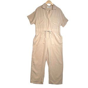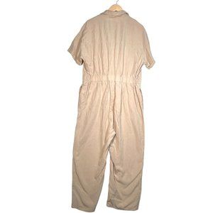 ASTR the label Linen blend Miri Beige Button-Up Short Sleeve Utility Jumpsuit