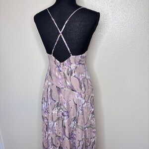 ASTR the label V-Neck Printed Holland Ruffled Cascade Maxi Dress Lilac Size M