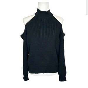 ASTR the label Women’s Black Ribbed Mock Turtleneck Cold Shoulder Sweater