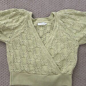 ASTR the label Women's Elowen Sweater SZL Puff Sleeve Soft Green Cottage