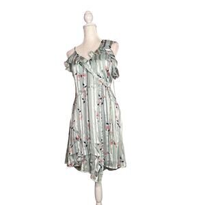 ASTR the label Women's Josie One Cold Shoulder Ruffle Floral Satin Wrap Dress