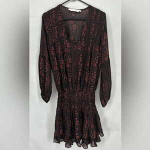 ASTR the label Women's XS Black Red Paisley Ruched Ruffle Tiered Mini Dress