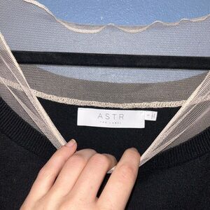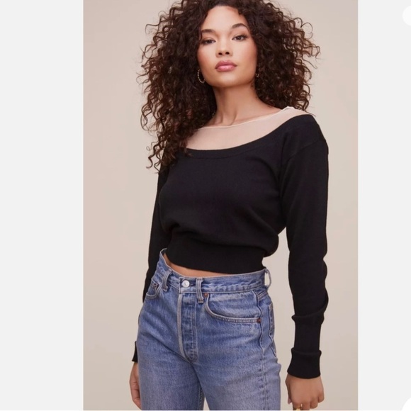 In great, like-new condition. Black sweater material top with a mesh neckline. Very high quality and soft material. I believe it’s sold out online.