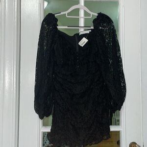ASTR the label ruched black lace long sleeve mini corset dress medium NWT