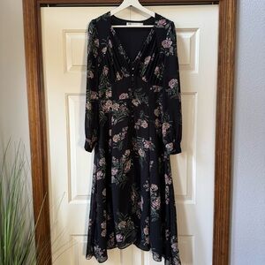 ASTR the label sheer floral v-neck button front long sleeve midi dress size M