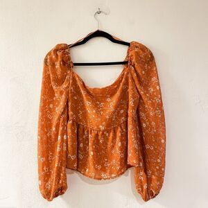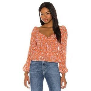 ASTR Long Sleeve Sweetheart Top in Rust Multi Floral Small
