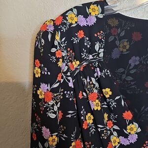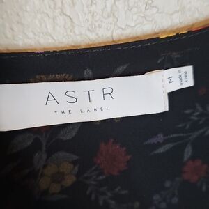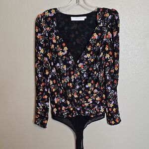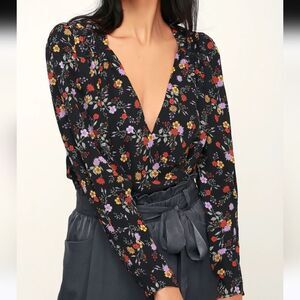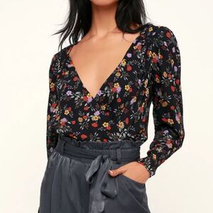 Elegant floral bodysuit with a flattering fit. Perfect for any occasion. ASTR Medium Bernadette Black Floral Print Surplice Bodysuit Long Sleeve in excellent condition