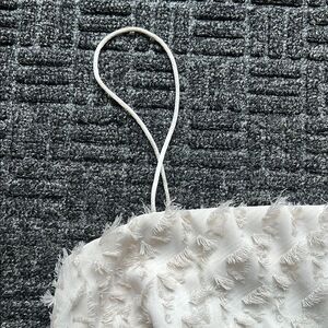 This elegant white dress features a unique textured design, perfect for any occasion. Its sleek silhouette and delicate straps add a touch of sophistication to your wardrobe. Size large! Great condition! Zipper in the back and straps are NOT adjustable.