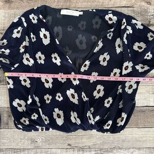 ASTR The Label Floral Navy Long Sleeve Ribbed Cropped Hippie Blouse | M