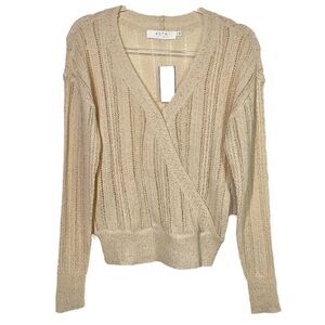 ASTR The Label Cream Wrap Front Pointelle Sweater Medium NWT