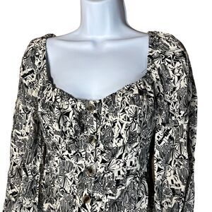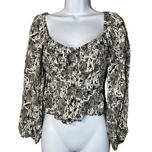 ASTR The Label York Square Neck Long Sleeve Print Top. Great condition only flaw is there is a stain on the shoulder and arm sleeve shown in pic.