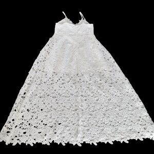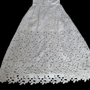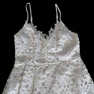 A figure-flattering closet staple. It features a lace overlay plunging neckline and playful A-line silhouette that descends to a midi length skirt. Finished with skinny adjustable straps & a hidden, zipper back closure