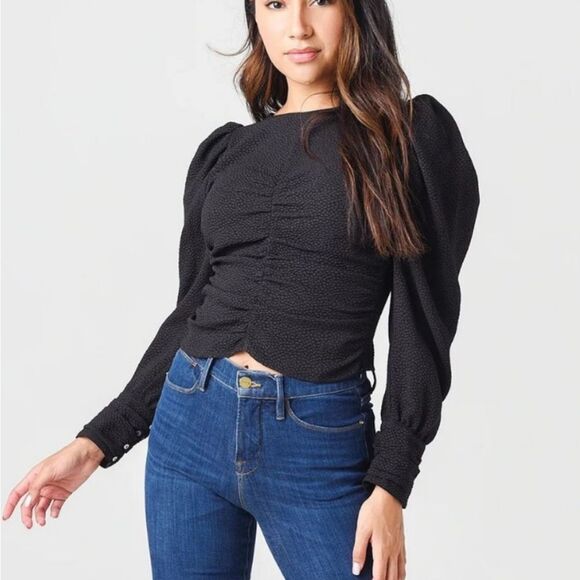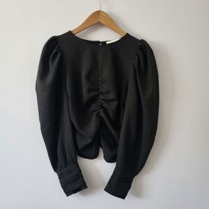 ASTR Women's Magdalene Ruched Front Long Puff Sleeve Blouse Top Size XS
