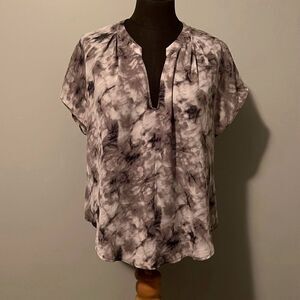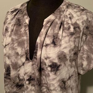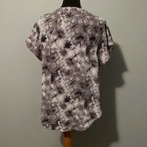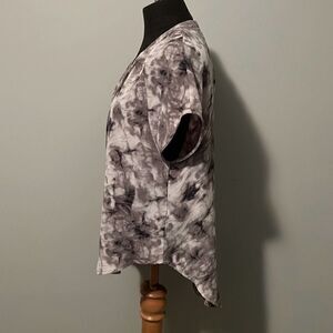 ASTR Women's Multicolor Tie Dyed High Low Hem Split Neck Short Sleeve Top Small