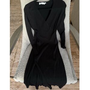 ASTR the Label Black Mid-Weight Ribbed Knit Astrid Midi Side Slit Dress Size XL. Gorgeous style and quality! Flattering front crossover top design with flirty front side slit. Hearty stretch fabric for perfect, form-fitting fit. Fits size US 10-12. Enjoy!