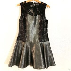 ASTR the Label Gunmetal Grey Metallic Lace Drop Waist Mini Dress.