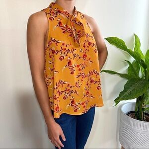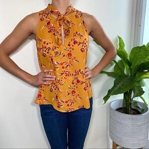 ASTR the label mustard floral sleeveless blouse