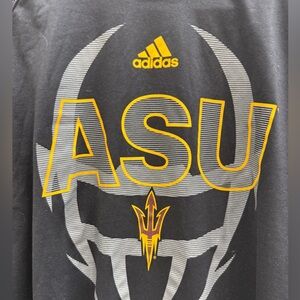 Adidas long sleeve shirt featuring ASU logo. Black with gold and gray accents.