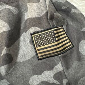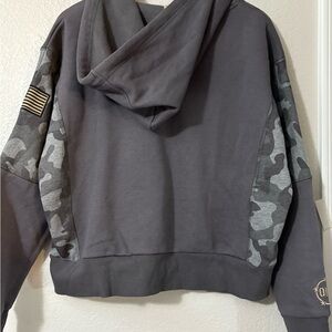 Gray ASU Sun Devils hoodie with camo sleeves. Features bold ASU lettering.