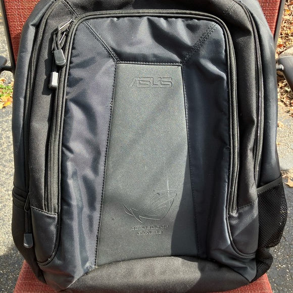 Sleek ASUS ROG backpack. Ideal for gamers. Durable and stylish.