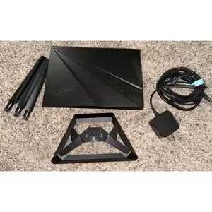 The ASUS ROG Rapture 4 Port Wireless Router (GT-AC2900) is designed specifically for gaming enthusiasts, featuring a sleek black design and a model specifically labeled as ROG Rapture GT-AC2900. With dual-band wireless connectivity and four LAN ports, this router offers a high-speed and stable internet connection for gaming. It is tailored to fit the needs of gamers looking for a reliable router to enhance their gaming experience with improved connectivity and performance.