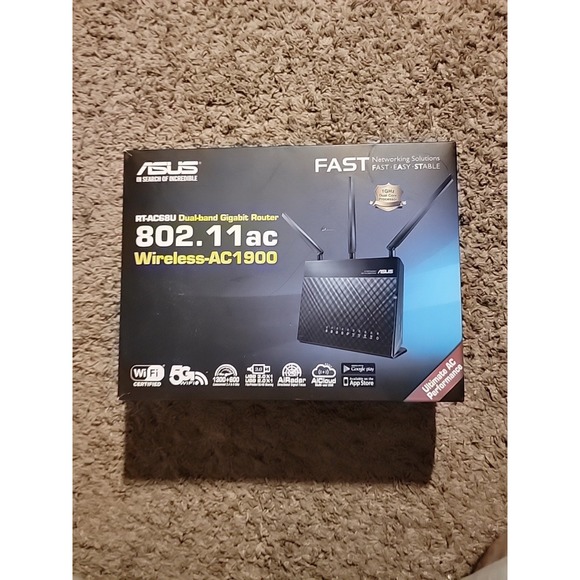 Experience lightning-fast internet speeds with the ASUS Router (RT-AC68R) Wireless-AC1900 Dual-Band Gigabit Router. This high-performance router supports a maximum LAN data rate of 1900 mbps and a maximum wireless data rate of 1900 Mbps, making it ideal for streaming, gaming, and browsing. With four LAN ports, this router provides reliable connectivity and features dual-band capabilities for seamless wireless performance. Its black color and sleek design make it a stylish addition to any home or office. This unit, which comes with an ASUS brand name, is perfect for those who want to enjoy a hassle-free internet experience.
