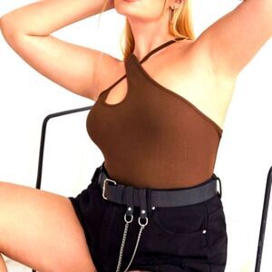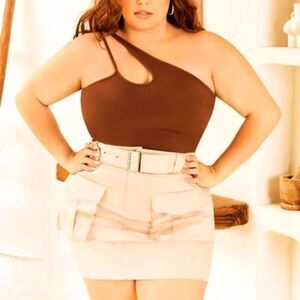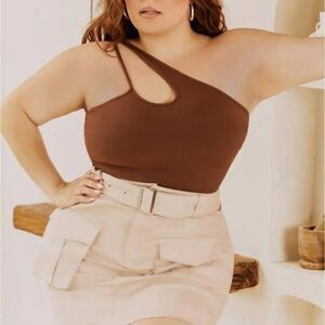 Brand new sexy versatile chocolate plus asymmetric ribbed size top sz.3x full description in pics
