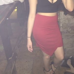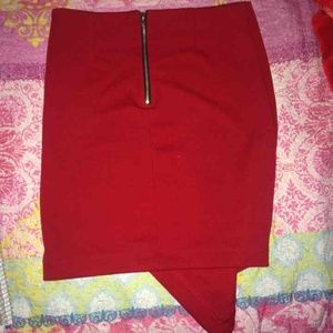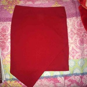 Red asymmetrical skirt. Only worn one time! It looks great with heels or sandals